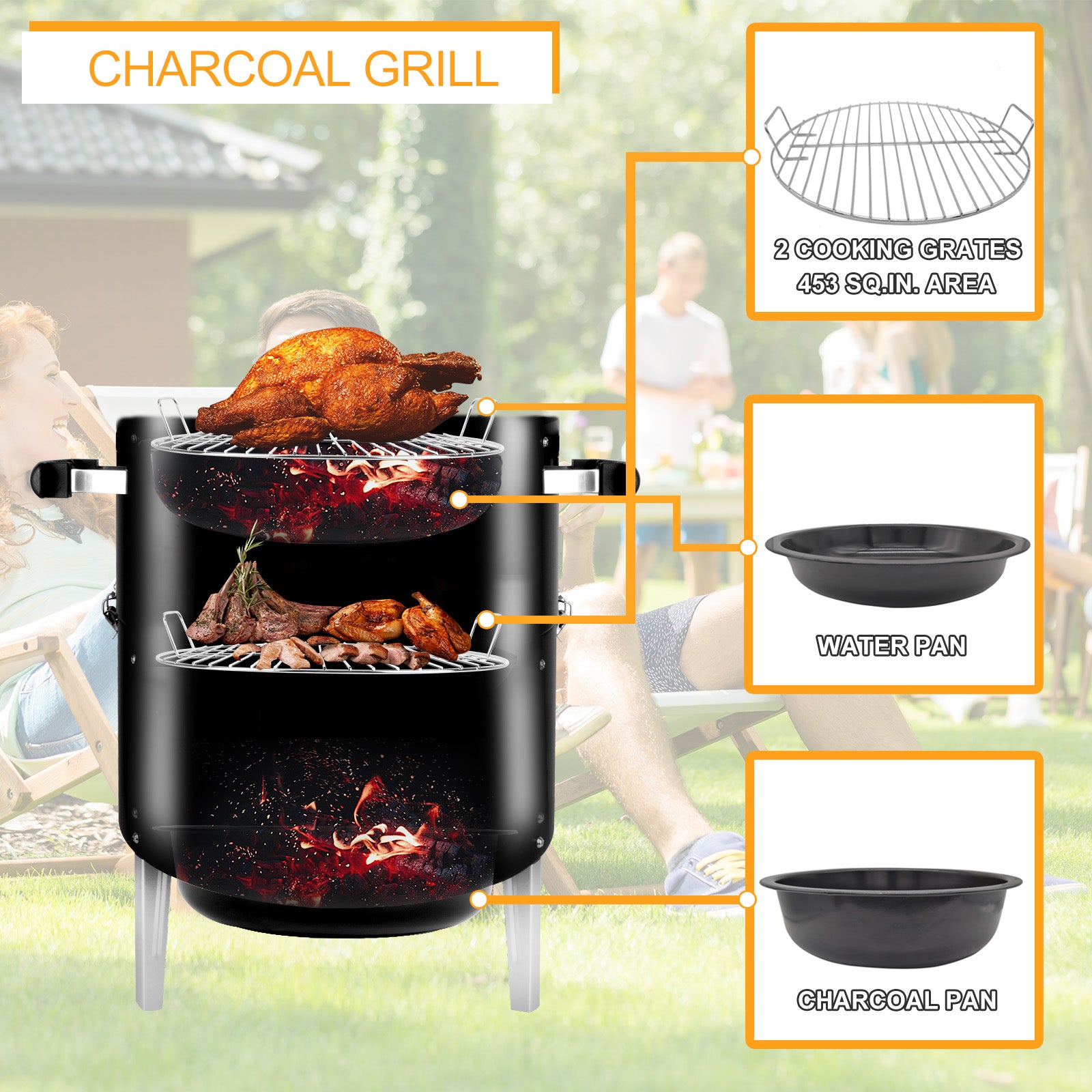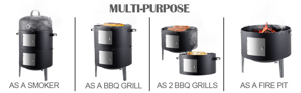 SUNLIFER 17 Inch Vertical Charcoal Smoker and Grill Combo, Heavy-Duty BBQ Smokers for Outdoor Cooking Camping FUEL TYPE: Charcoal/Wood | BODY CONSTRUCTION: Heavy-duty Steel | COOKING GRATE MATERIAL: Chrome-Plated | COOKING GRATE QUANTITY: 2 PCS | TEMPERATURE GAUGE: √ | AIR VENT: √
