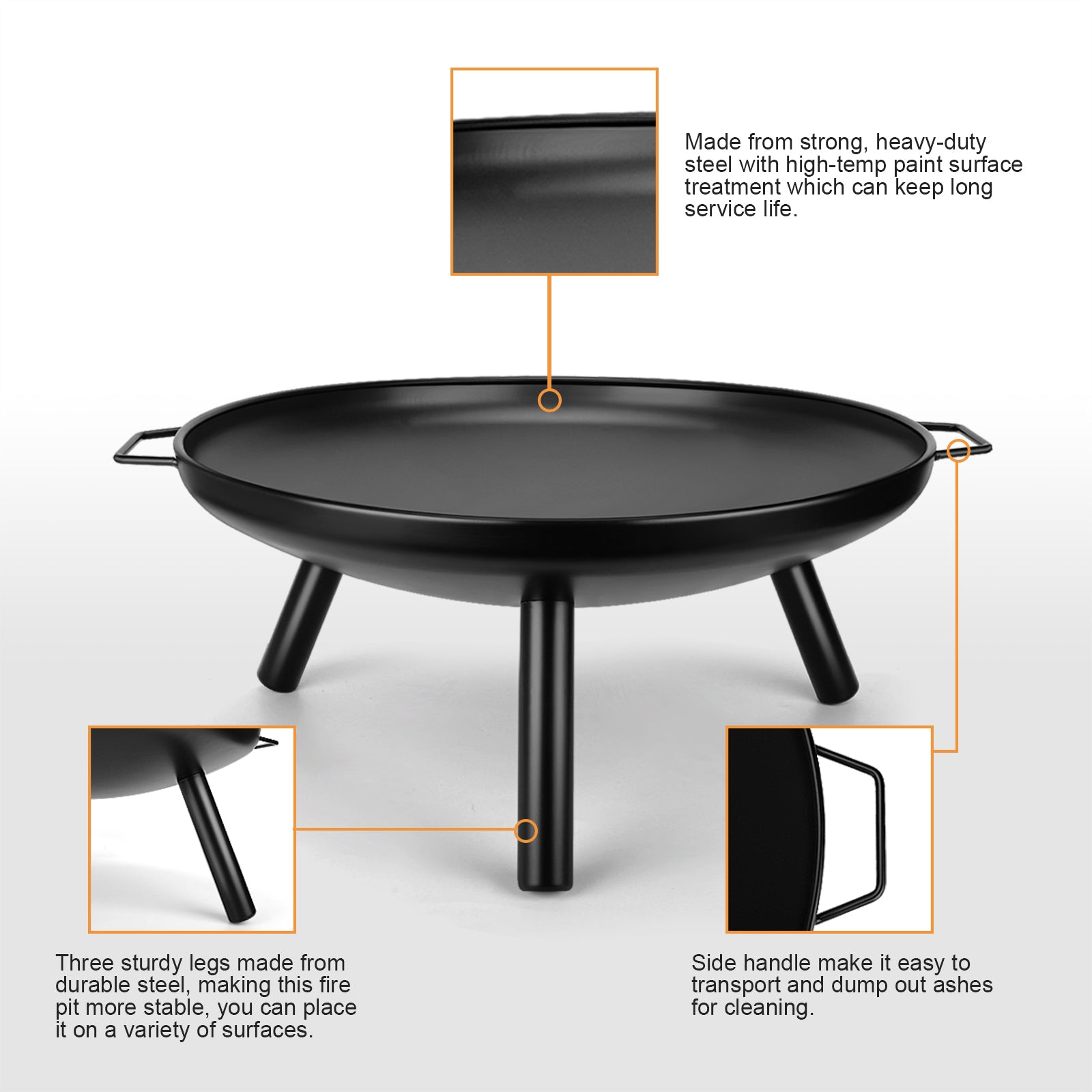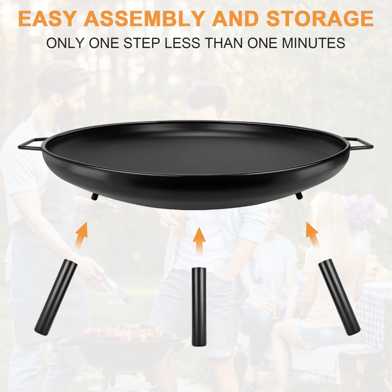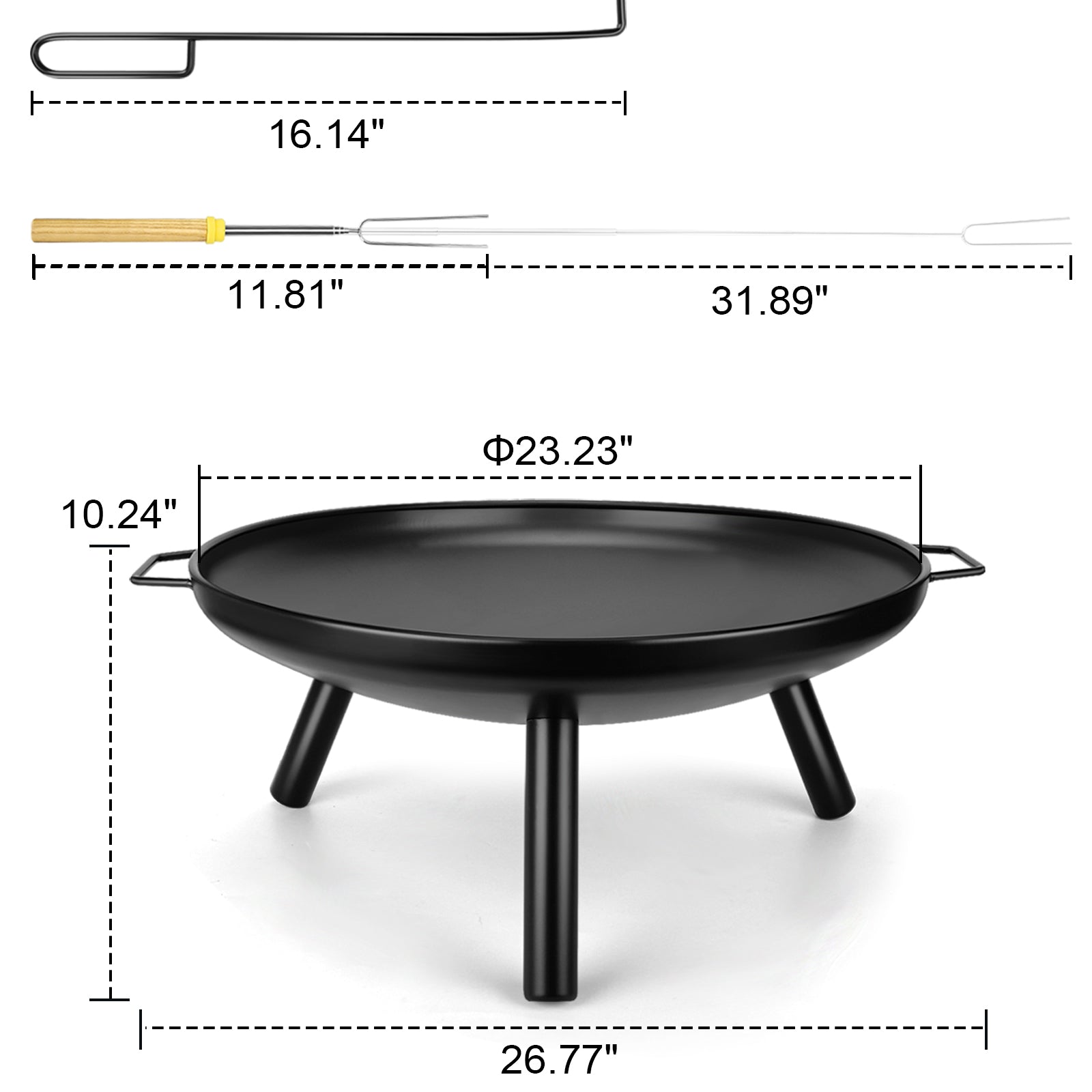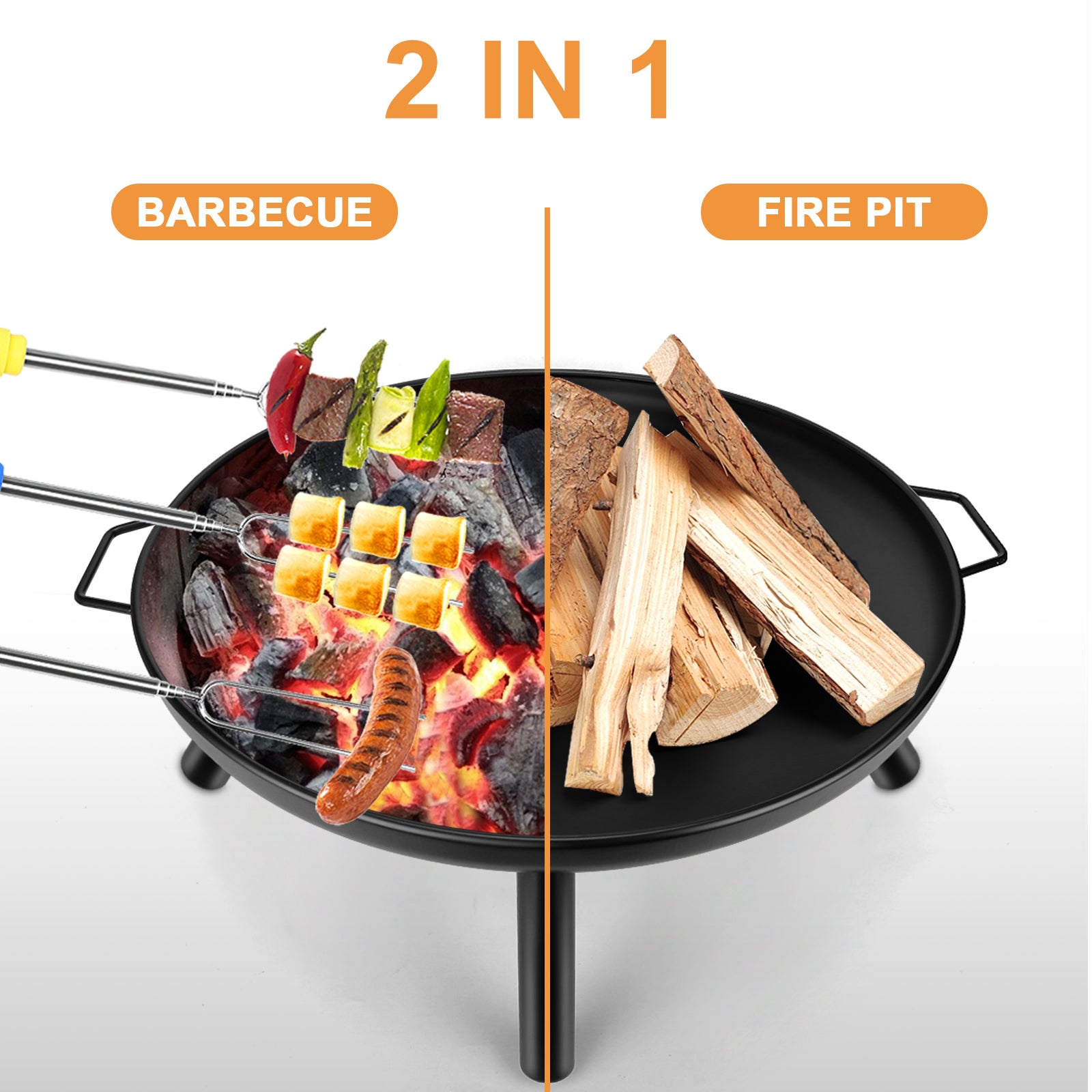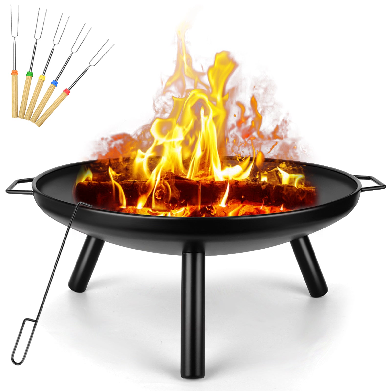 SUNLIFER Wood Burning Fire Pit : 24-inch Outdoor Patio Fire Pits Bowl with 5 Pcs of Roasting Sticks | Steel Backyard Camping Bonfire Firepit with Poker for Outside Garden Picnic