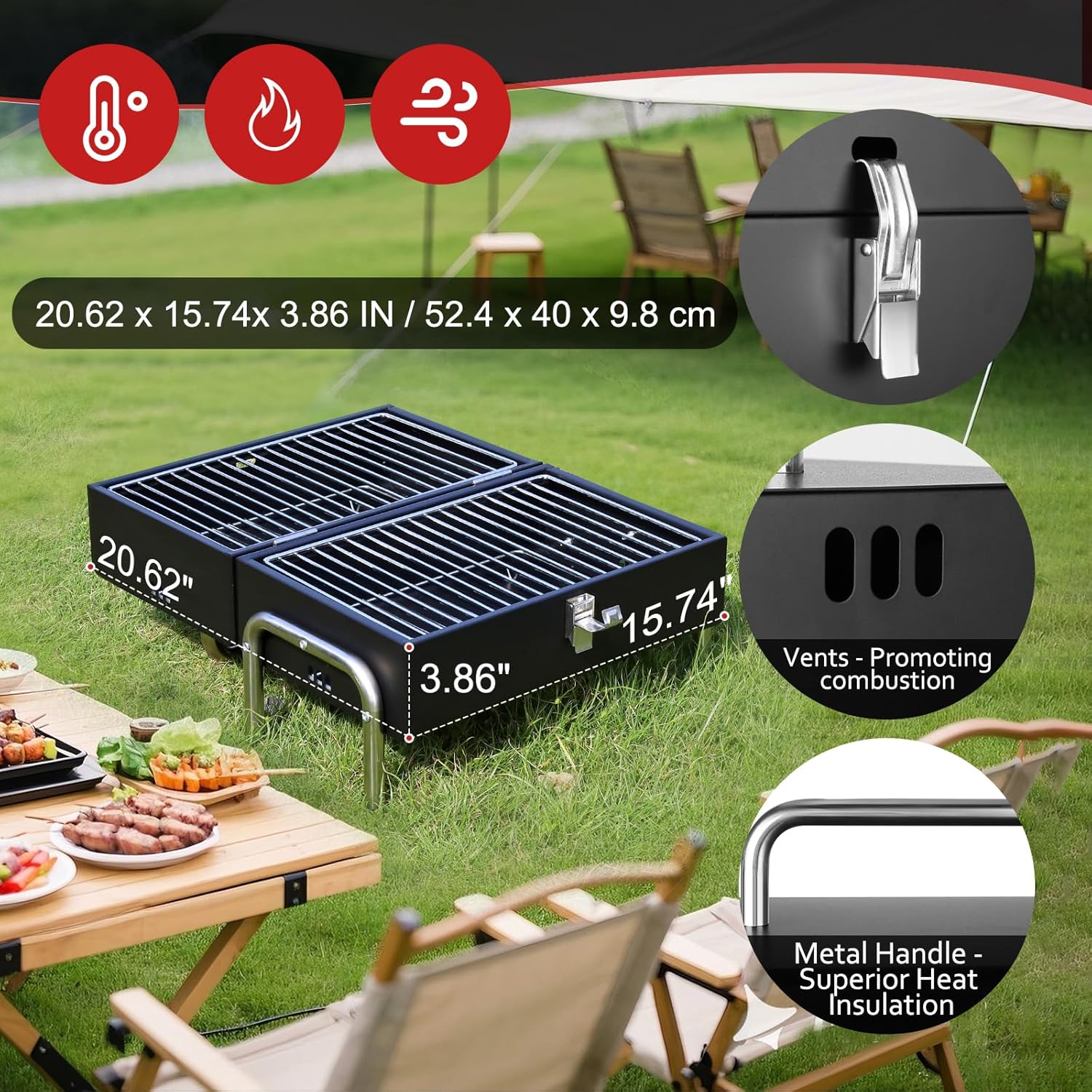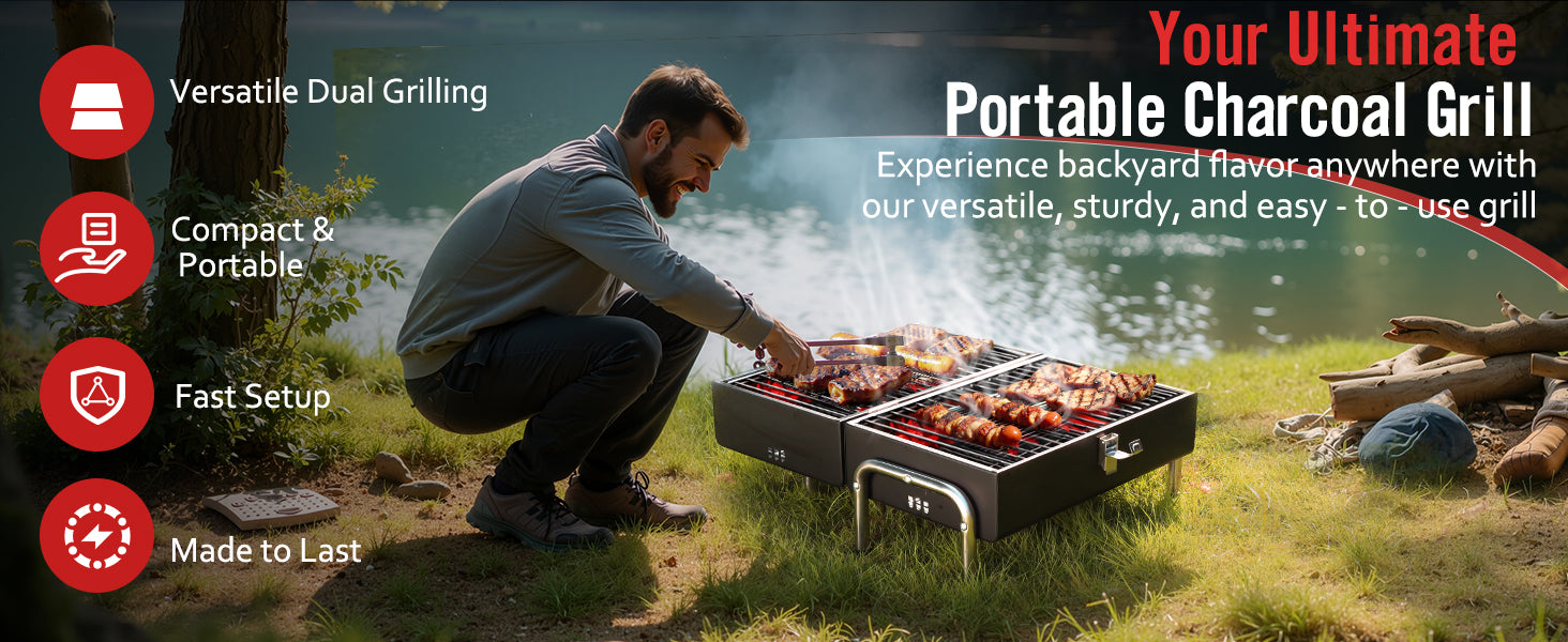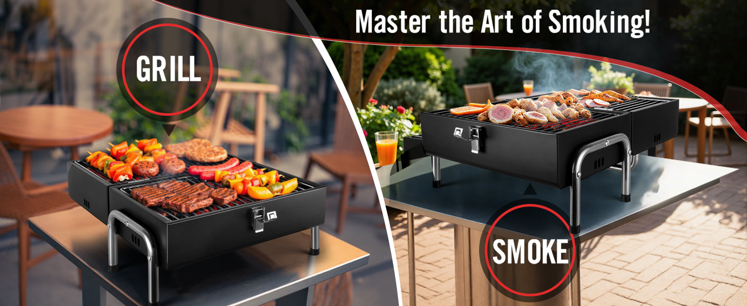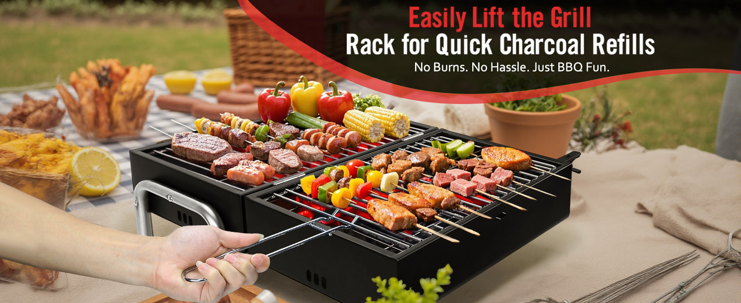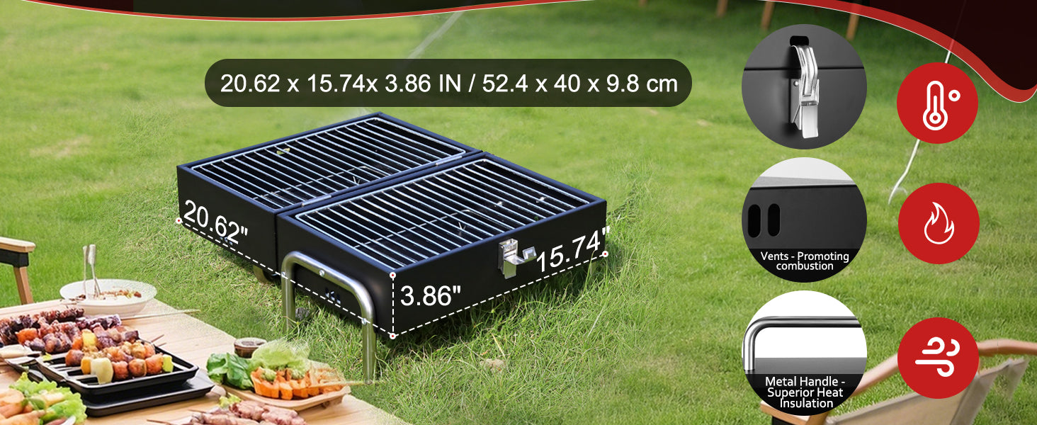 - 【Convenient Grate Lifter】Includes a dedicated grate lifter tool for safe charcoal reloading. Matte black finish blends seamlessly into outdoor settings. Perfect for camping trips or backyard gatherings.